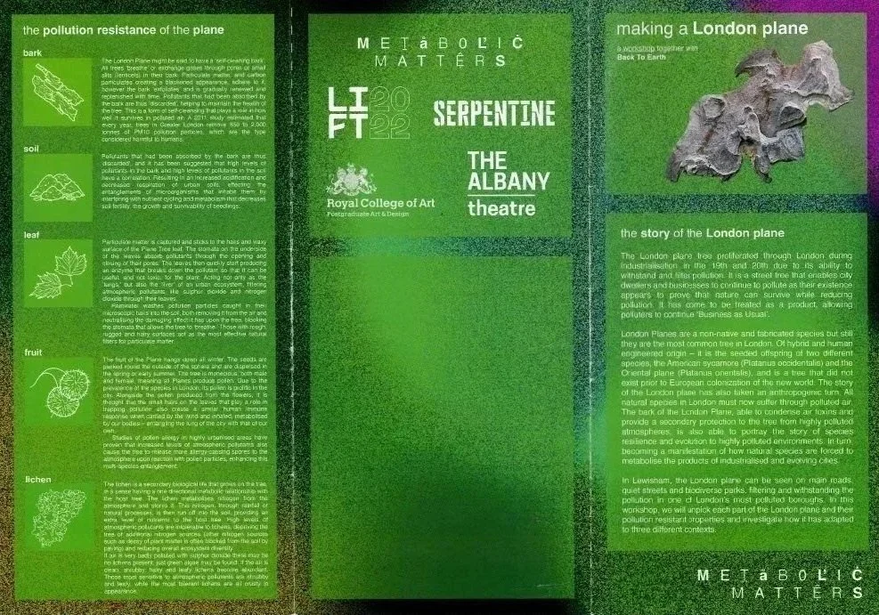 METABOLIC MATTERS. This workshop was a group initiative that explores the material and biological cycles that underpin the London plane’s ecological resilience. Participants are invited to engage with the tree’s anatomy, chemistry, and symbiotic relationships through drawing, observation, and discussion.